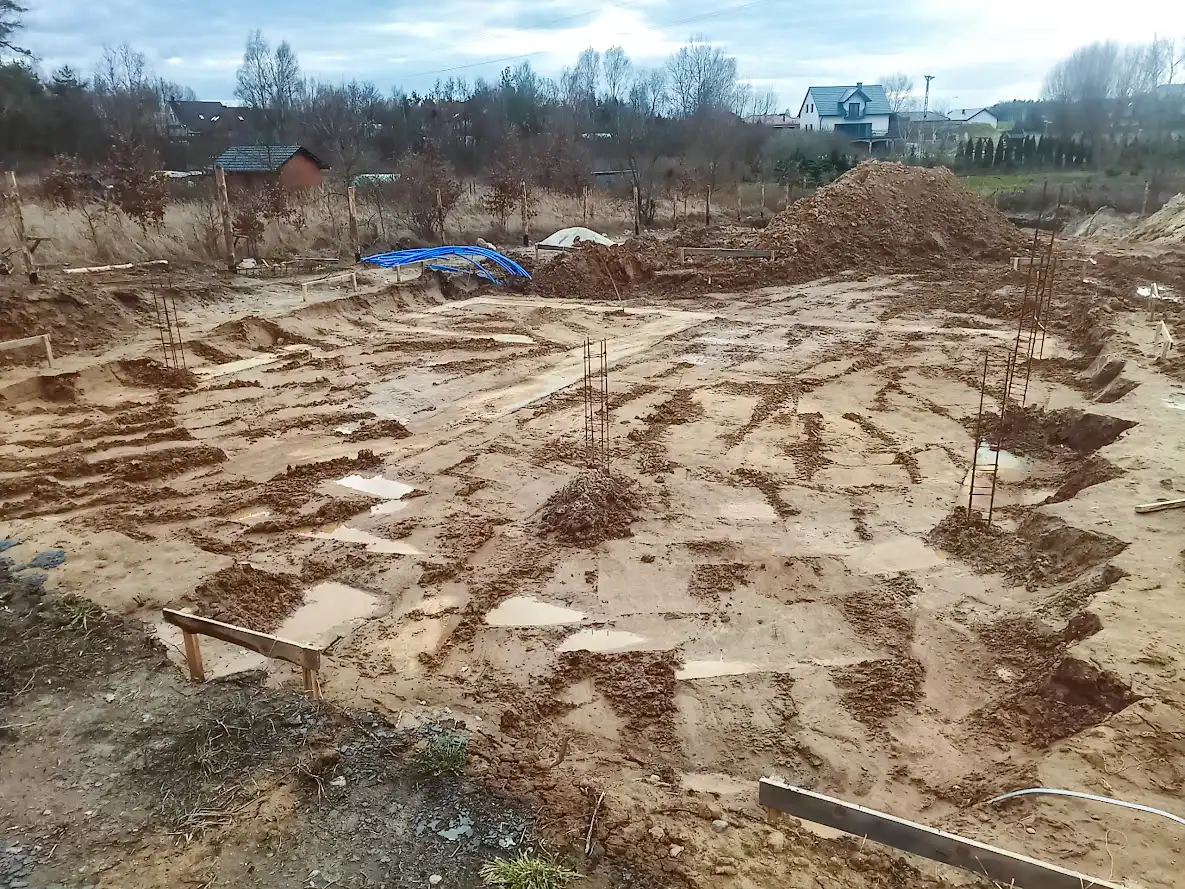 W związku z tym dokładnie przygotowujemy i oczyszczamy grunt. Następnie wykonujemy odpowiednie wgłębienia w ziemi, aby zapewnić stabilne podparcie dla budynku.